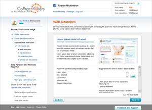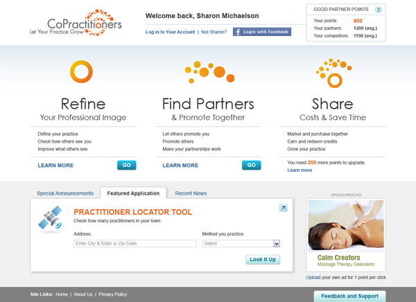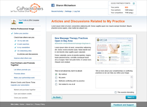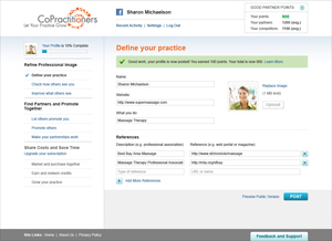 Practitioners can build a profile to refine their public image, find others in complimentary fields, and work together to grow their practice. Work performed as a designer for