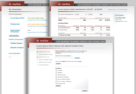 Naehas is a web-based application for managing direct-marketing campaigns. Users can organize web content into "landing pages" and track statistics about the number of respondents to their campaigns.