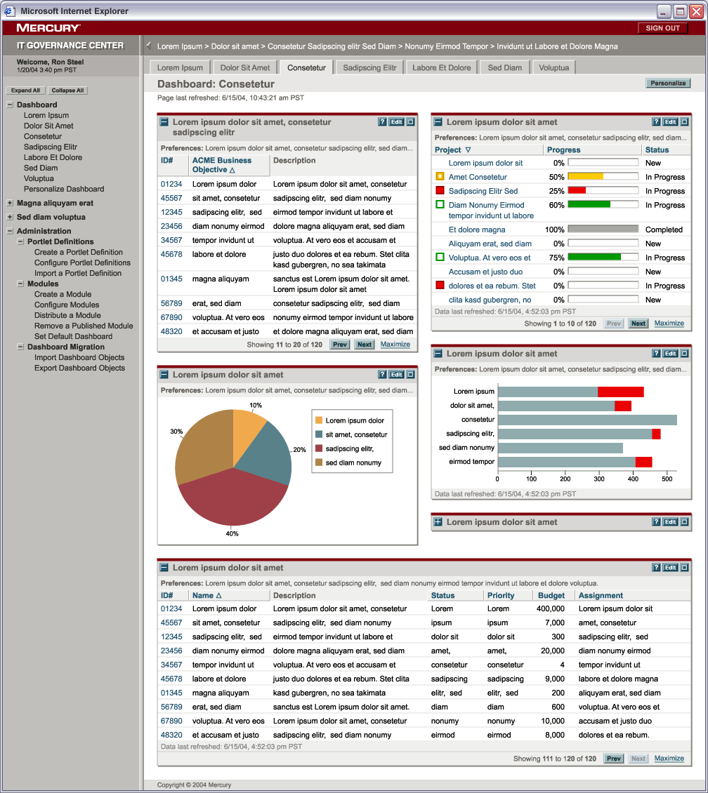 The new Mercury IT Governance product interface, shown as designed at actual size. |
