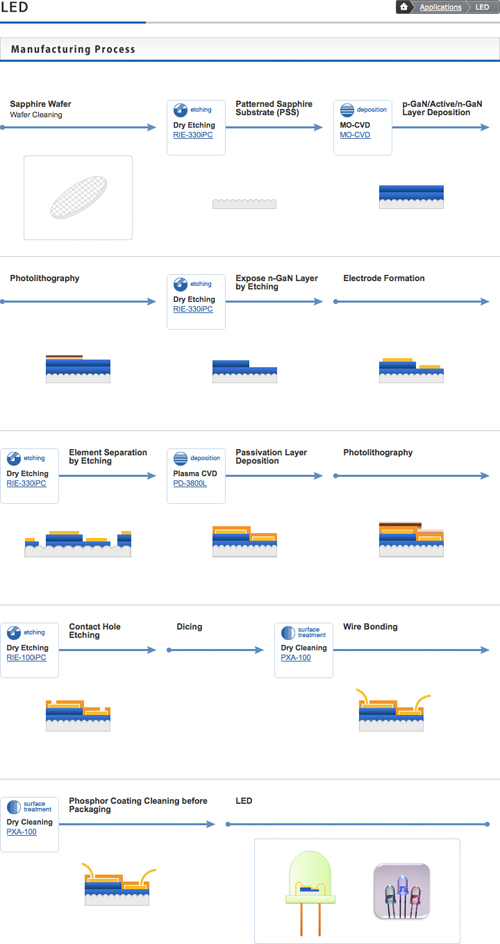 The manufacturing process diagrams are an important element of the Samco web site, making it clear to site visitors how Samco equipment is used in creating hi-tech devices. I developed a unifying theme for the step titles and system links.